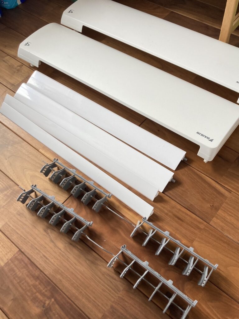 私の家は、お掃除機能付きのエアコンを設置しています。お掃除付きの場合は取り外す部品が多くなりますが、YouTubeを見ながら分解していくと問題なく出来ました!